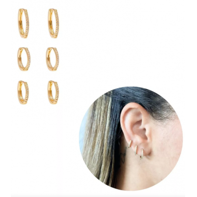 Trio Argola Feminino Cravejado Banhado A Ouro 18k Cor Dourado' é uma peça de alta qualidade, banhada a ouro 18k. É uma peça antialérgica, sem níquel, ideal para quem tem sensibilidade a certos metais.
