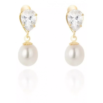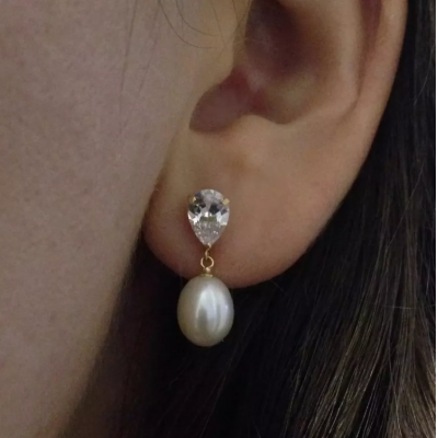 گوشواره های مروارید طبیعی Biwa 7mm و زیرکونیای جواهرات طلای 18K