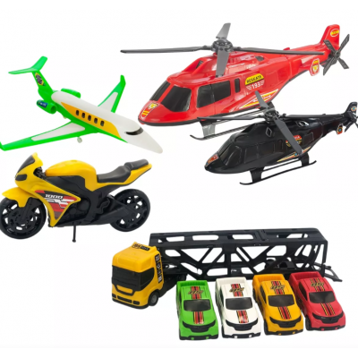 کیت با 8 چرخ دستی اسباب بازی ، کامیون ، هواپیما و هلیکوپتر رنگهای مختلف.