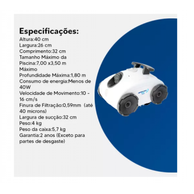 Robot Cleaning Apsica Max 5201 Nautilus برای تمیز نگه داشتن استخر شما به راحتی و اقتصادی ایده آل است. سازگار با هر سیستم تصفیه ، می توان از آن در استخرهای حداکثر 7.00 x 3.5 متر استفاده کرد. فن آوری جریان تمرکز آن ، تمیز کردن عمیق و کارآمد را تضمین می کند ، با ناخالصی های جمع آوری شده در یک سبد بزرگ و آسان برای تمیز کردن. این ربات اقتصادی و دارای هزینه کم کار است و جهت قابل تنظیم و تنظیم سرعت را ارائه می دهد. سبک وزن (4 کیلوگرم) ، آسان برای کنترل و نگهداری ، Aspraa Max 5201 Nautilus باعث می شود استخر تمیز کردن یک کار ساده و مؤثر باشد.